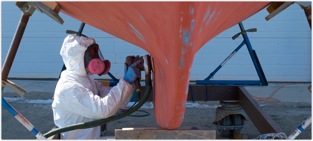 If you need to sand, sanding makes a mess, so first lay down some drop cloths under and around your work area. Sanding bottom paint also creates toxic dust, so use a dustless sander. And protect your exposed eyes, skin, and lungs with high-quality protective equipment before you begin sanding.